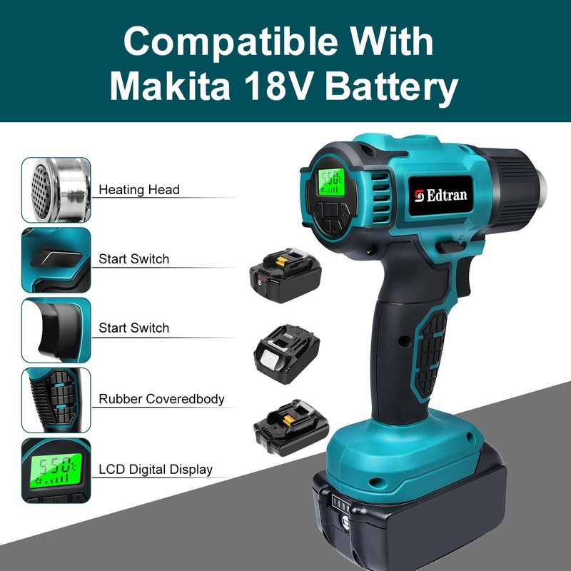 • [Compatibility] Cordless Hot Gun compatible for Makita 18 Volt 18V LXT Battey , Such as BL1860 BL1850 BL1840 BL1830 BL1820 etc .(Battery not Include)