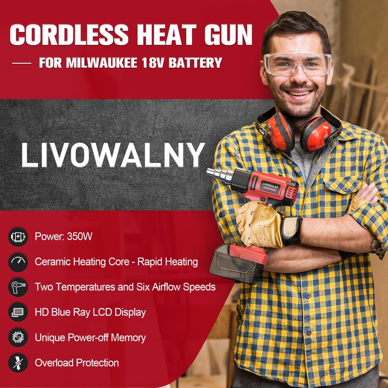 Cordless Heat Gun for Milwaukee m18 Battery, LIVOWALNY 18V 350W 122℉~1202℉ (5...