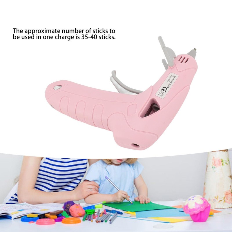 • RECHARGEABLE: it for 3 hours, you can use the glue sticks continuously for 1.5‑2 hours. Approximate number of glue sticks used on a single is 35‑40.