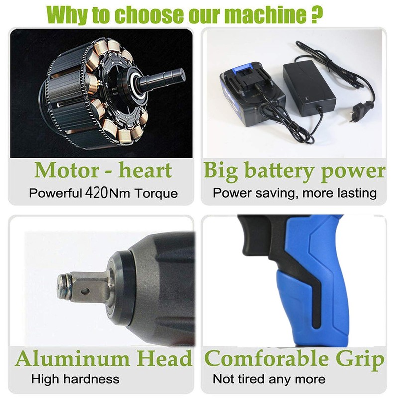 - ⚒ 1 battery and 1 charger, 4 good quality sockets (14mm/17mm/19mm/22mm), 1 heavy duty carry case, for ease of storage and transportation.