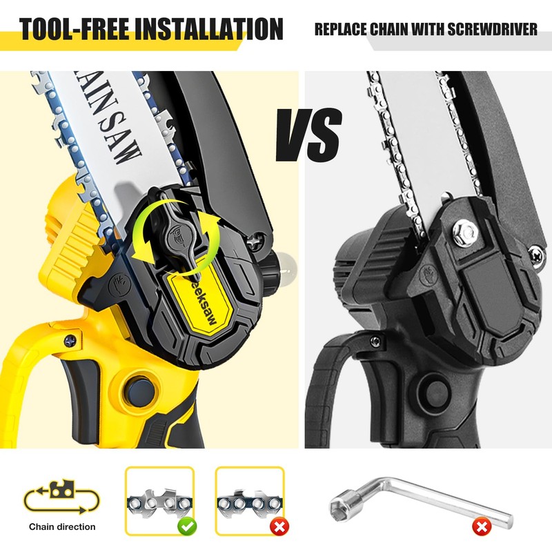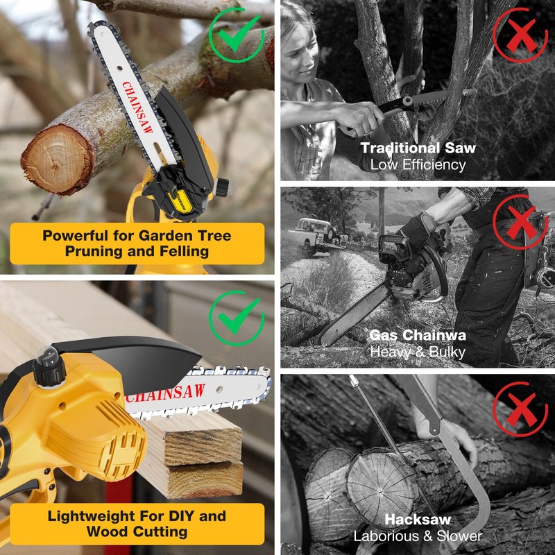 Cordless Mini Chainsaw 6 Inch, Auto Oiler &Tool-Box, One-Hand Handheld Electric Portable Chainsaw, Super Power Small Chain Saws 2x2000mAh Battery Operated, Hand Saw for Tree Wood Cutting Ranger