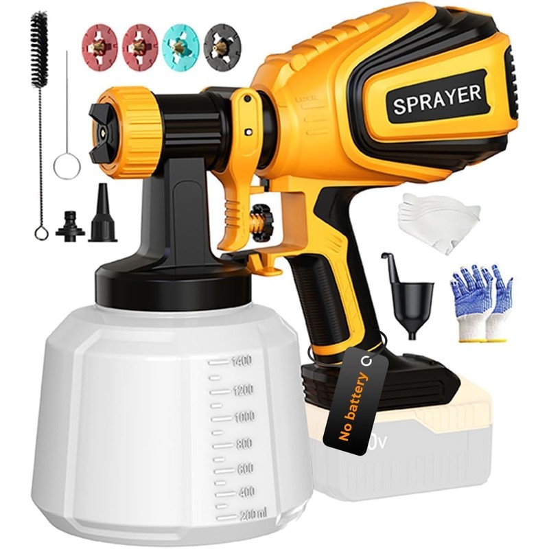 Cordless Paint Sprayer for Dewalt 20V MAX Battery Electric Spray Paint Gun with High Capacity Container Easy to Clean for House Painting Yellow(Not Include Battery)