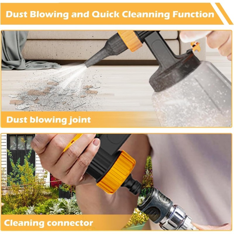 - Before spraying,use the dust-blowing attachment to remove dust for a smoother finish;After use,connect the cleaning attachment to the faucet to flush out residual paint;Clean immediately to extend the sprayer's lifespan and maintain peak performance