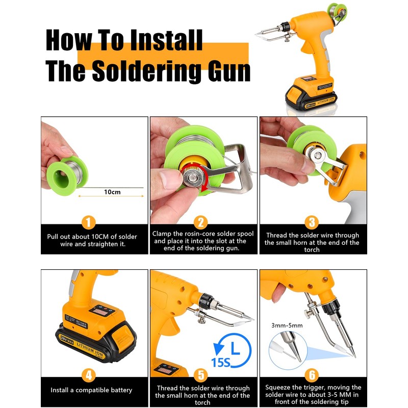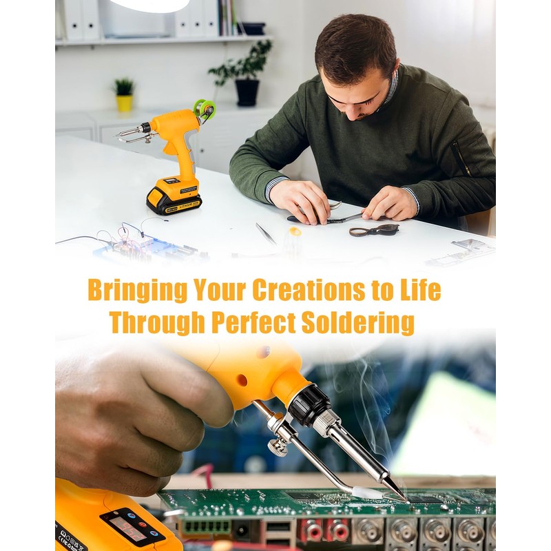 - 【Outstanding Cordless Soldering Iron with User-Friendly Design】- Equipped with a built-in low-voltage protection chip, it automatically cuts off power below 15V to protect your battery.