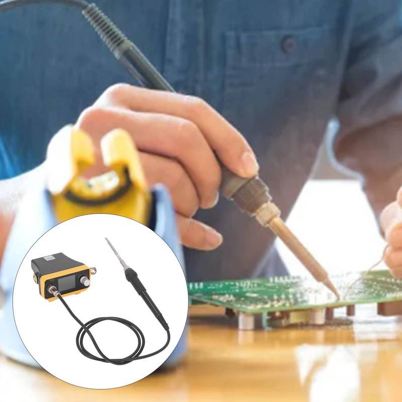 1、CORDLESS DESIGN: This soldering iron station is powered by 20V 60V slide style battery packs (not included), more convenient. 2、EASY TO USE: The solder iron station is designed with a 1.77in TFT screen, the temperature readings could be displayed clearly, and you can set the temperature accurately and easily by knob. 3、FAST TEMPERATURE RISE: The soldering iron station has a fast temperature rising speed, helps to complete welding work quickly. 4、AUTO COOLING: With automatic cooling mode, when not in use, put the handle on the bracket, the machine will automatically cool, and will heat up rapidly when picked up. 5、USER FRIENDLY: Soft handle design provides maximum comfort in long term welding projects, the station supports heating core with T12 handle and has DC interface for 24V auxiliary power supply.