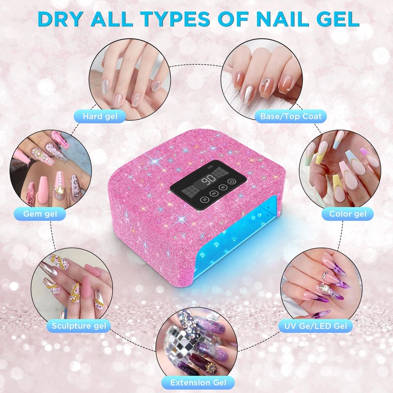 - šćšš©šš«š¤š„š² UV Light for Gel NailsćFully covered with Sparkling Nail Rhinestones. Suitable for UV/LED gels, Base/Top Coat, Color Gel, Builder, Acrylic... Not for regular polish or air dry polish. Drying time depends on different gel brands. Please try more brands to find gels that fits your dry speed. Do not apply too thick gels to reduce drying time. Provide 18 months warranty, please contact us whenever you need, your satisfaction is our top priority.