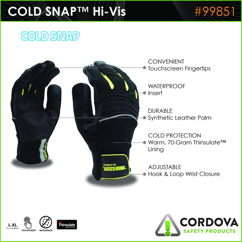 Cordova 99854 High-Visibility Cold Weather Gloves; Waterproof Gloves for Cold Weather, Touchscreen Fingertips, Durable, Thinsulate Lining, Adjustable, Synthetic Leather, X-Large