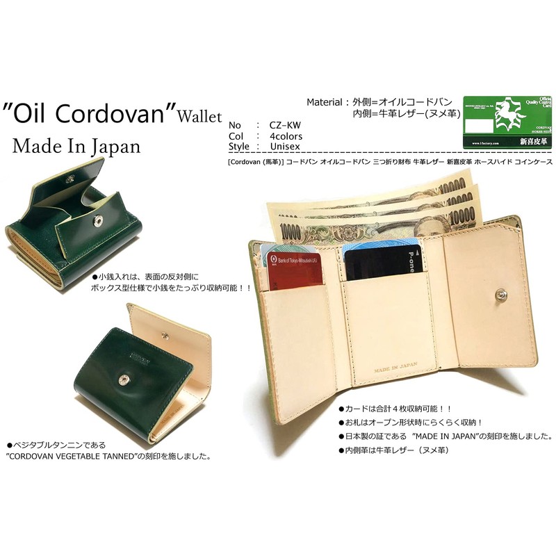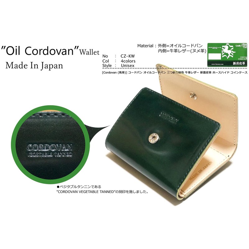- Material: Horsehide (Cordovan) / Made in Japan, Made of Shinki Leather, Material: Outer = Oil Cordovan, Interior: Cowhide leather