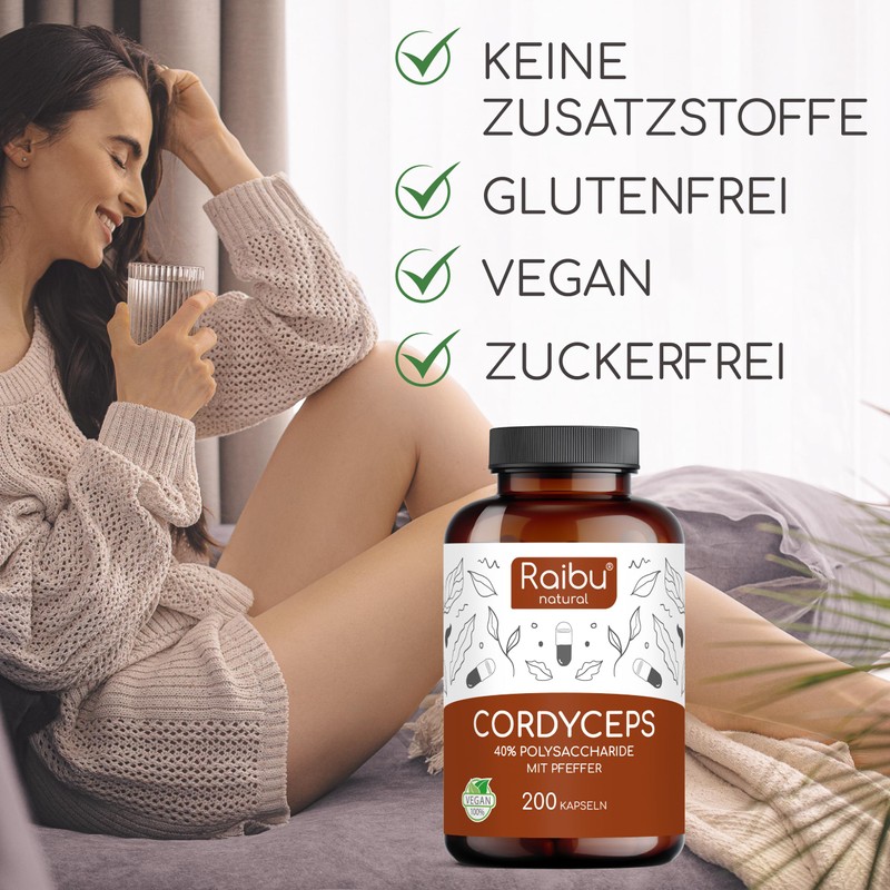 - Ingredients in natural quality – our Cordyceps capsules are produced in Germany to the highest quality standards. The Cordyceps mushroom capsules are free from additives, preservatives and dyes, vegan, gluten and lactose free