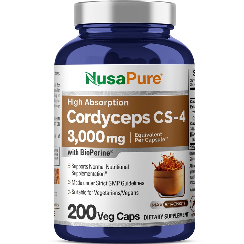 - High Absorption Cordyceps C S-4 3,000mg equivalent per capsule. Bioperine