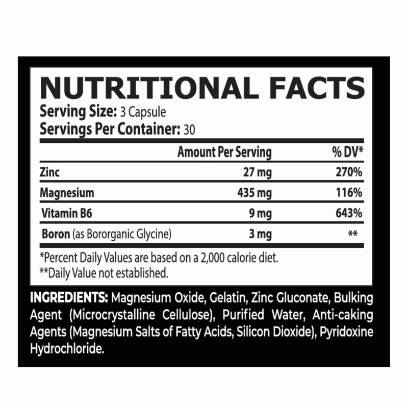 ZMB6 is a vital combination of Zinc, Magnesium, and Vitamin B6, supporting protein synthesis and bone health