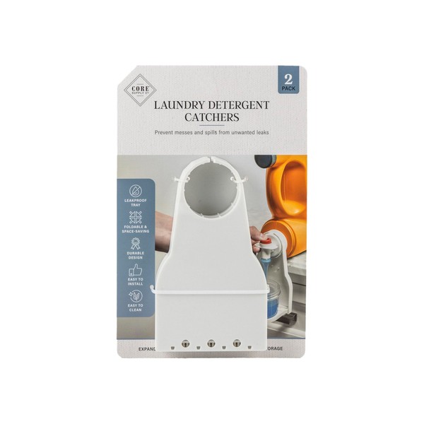 Core Home Foldable Laundry Detergent Catcher With Leakproof Tray Plastic White Pack of 2