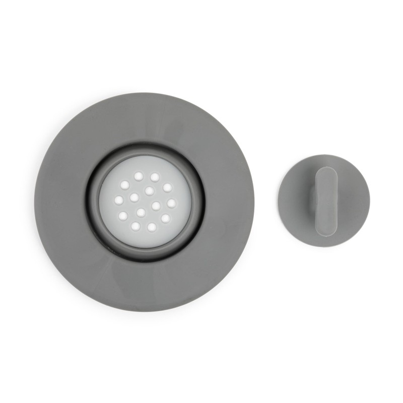 Core Kitchen Essential Sink Strainer with Stopper 5" Diameter - Stopper Conveniently Suctions to Sink Wall - Grey