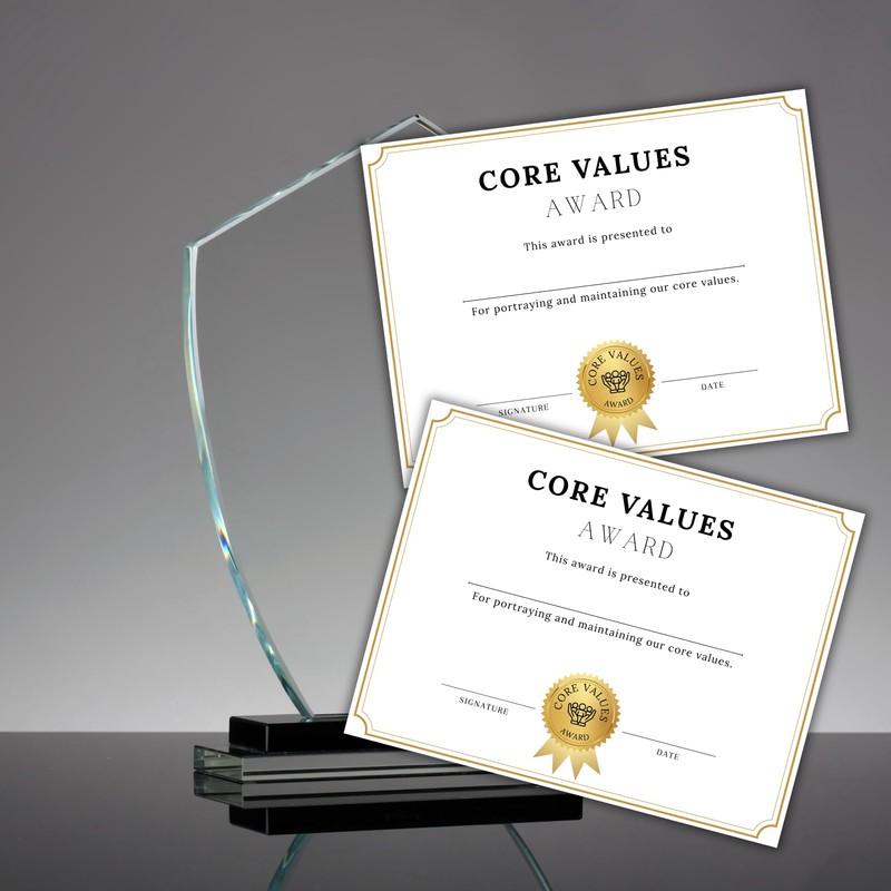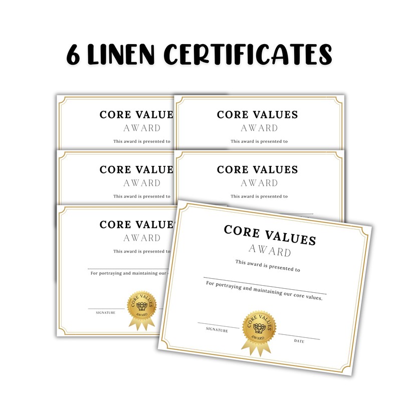 Core Values Awards Certificate 6pk 8.6x11” Linen Company Employee of The Month Business Achievement Ceremony Top Producers Earners Certificate