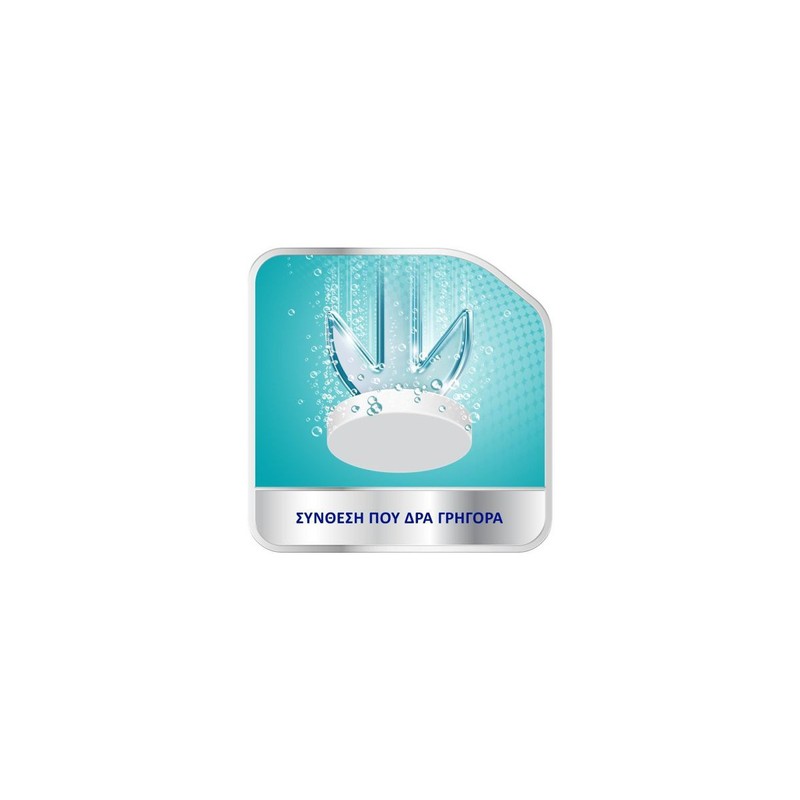 Sodium bicarbonate, Citric acid, Potassium caroate (Potassium monopersulfate), Sodium carbonate, Sodium carbonate peroxide, TAED, Sodium benzoate, PEG-180, Sodium laryl sulfate, VP/VA Copolymer, Aroma, Subtilisin, Cellulose gum, CI 42090, CI 73015.