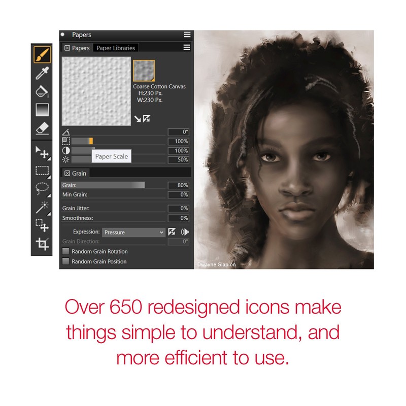- Authentic acrylic paints, chalks, oil paints, pencils and watercolours Graphic effects such as dynamic speckles, hose and ink NEW: dark user interface design, redesigned symbols and controls NEW: improved painting tool silhouette for faster and lag-free design Audio implementation: Painting tools respond to sounds and music Helpful tutorials within the software