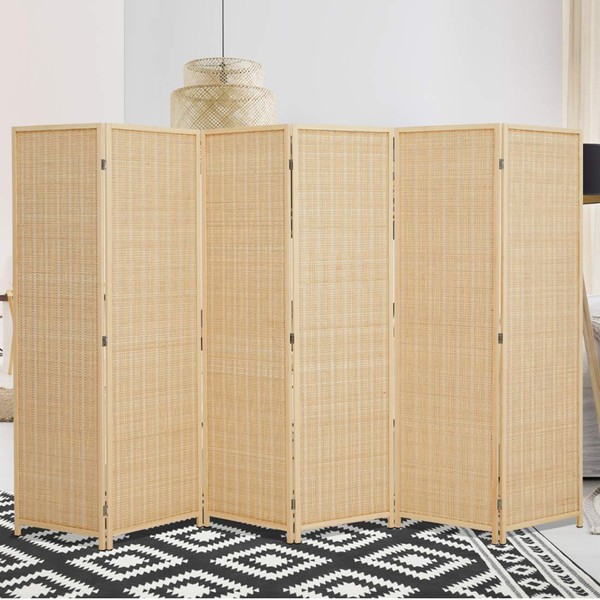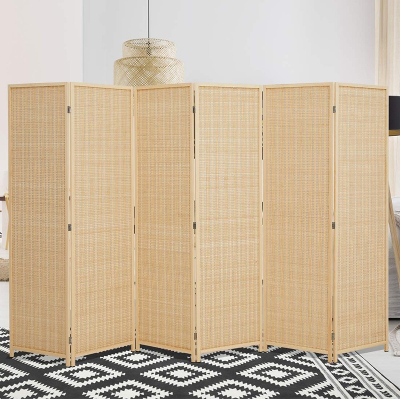 Corelax Room Divider Privacy Screen with Natural Bamboo,6 Panel Folding Privacy Screens,Freestanding Room Divider-Beige