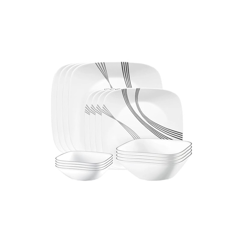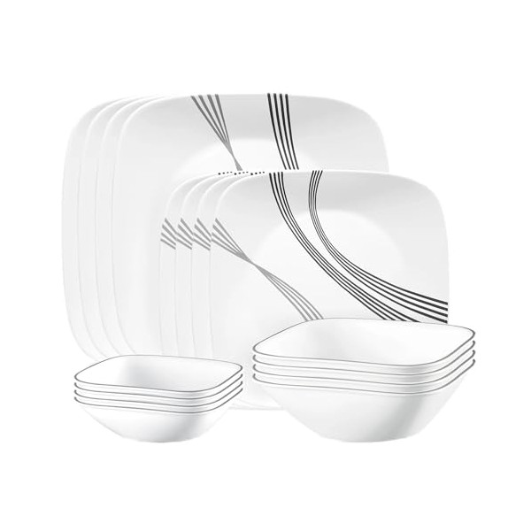 Corelle Urban Arc 16pc, Service for 4, Dinnerware Set, 8 Plates Bowls, Chip & Break Resistant, Dinner and Corelleware White