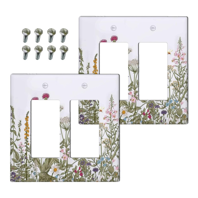 Corenest Outlet Covers Wildflower Floral Flower Plant Herbs Leaves 2 Gang Light Switch Cover Double Rocker Wallplates Decorative GFCI Socket Cover Electrical Switchplate for Bedroom Home (2 Pack)