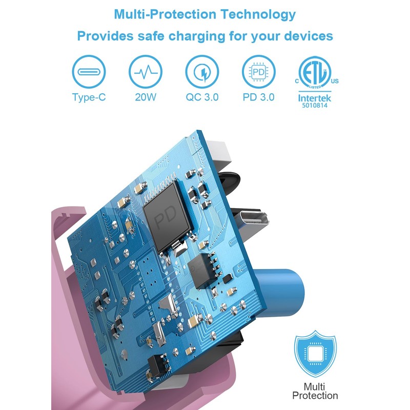 iPhone 14 13 12 Fast Charger 20W PD USB C Wall Charger with 6FT Fast Charging Cable for iPhone 14/14 Pro/14 Pro Max/14 Plus/13/12/11/Pro/Pro Max/Mini/Xs Max/X, iPad - Pink