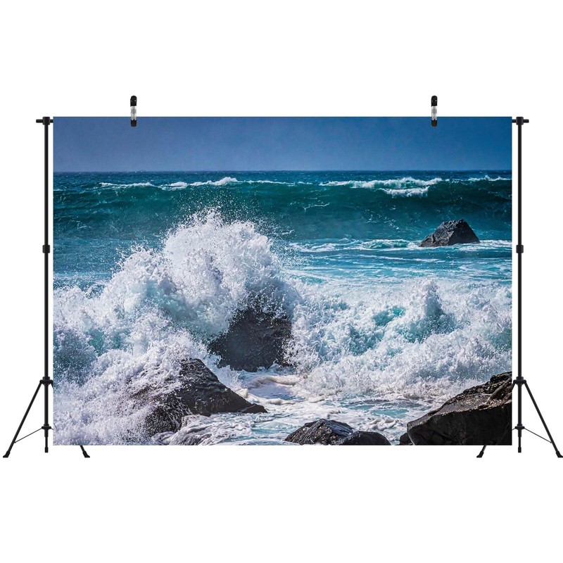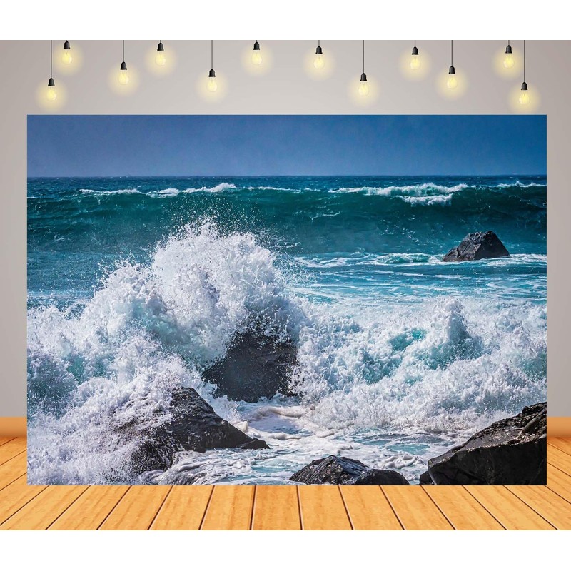 CORFOTO 6x4ft Fabric Sea Wave Breaking Rock Backdrop Ocean Waves Photography Backdrop Summer Sea Blue Wave Backdrop Birthday Party Decor Art Wall Decor Photo Props