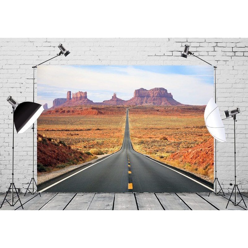 CORFOTO 7 x 5 ft Red Rock Canyon Empty Road Photo Background Desert Panorama Highway View Photography Background Asphalt Road Landscape Route 66 Background
