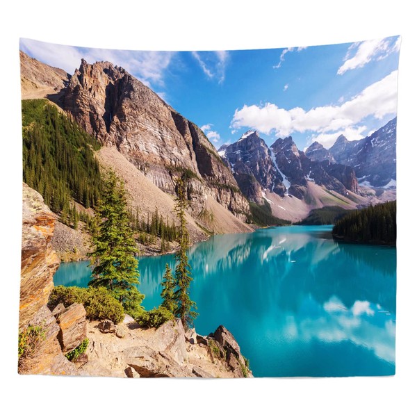 CORFOTO Nature Tapestry Wall Hanging Banff National Park Salt Lake Hills Garden Scene Mountain Wall Tapestry for Bedroom Aesthetic Living Room Dorm Decor Wallpaper 60Wx50H inches Fabric