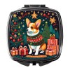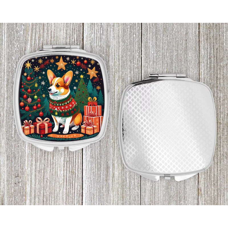 Square Compact Mirror, Rectangle, Silvertone metal, 2.75 inches x 3 inches x .3 inches Artwork on the front and two mirrors inside this great little compact.