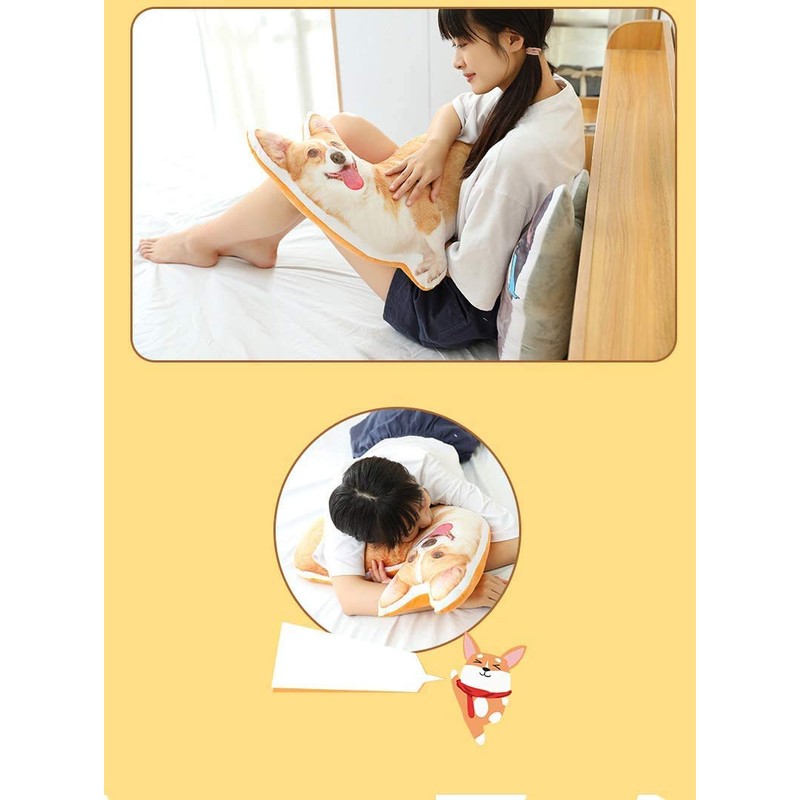 3D Corgi Dog Print Soft Plush Throw Pillow Plush Toy Lifelike Animal Pillow Cushion