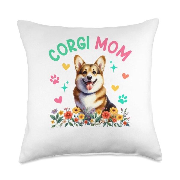 Corgi Mom Mother's Day Floral Cute Dog Owner Family Group Throw Pillow