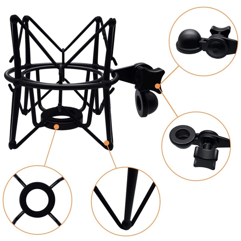 - Microphone Spider Suspension: Microphone shockmount anti- vibration structure designed for installing professional recording condenser microphones to isolate and reduce operating vibration and noise.