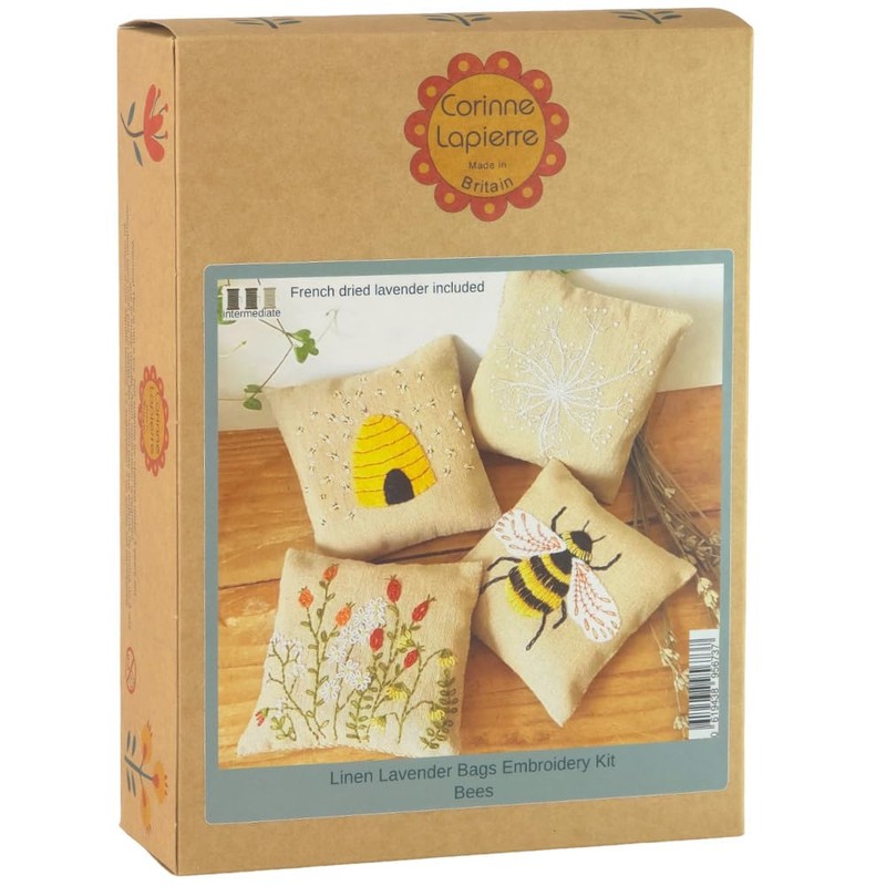 Corinne Lapierre Linen Lavender Bag Embroidery kit - Bees, Small