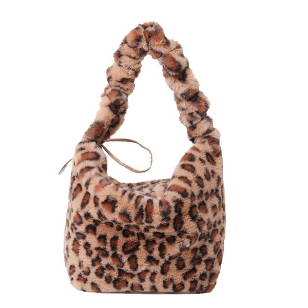 CORIOS Soft Plush Shoulder Bag for Women Leopard Zebra Print Handbag Cute Fuzzy Crossbody Bag Furry Top Handle Bag Large Messenger Bag Elegant Tote Bag Fluffy Satchel Bag Leopard Print Khaki A