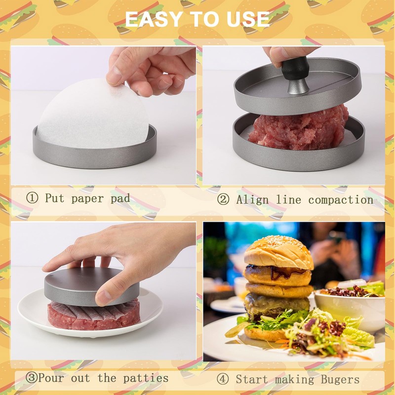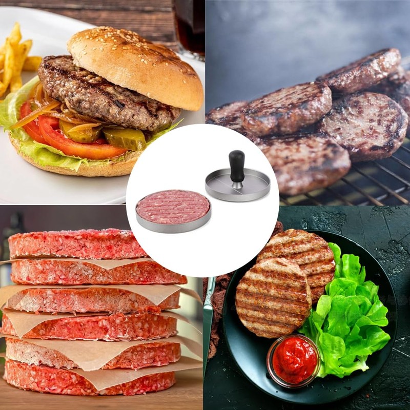 - Ideal hamburger maker: this burger press has perfectly round burger patties with grooves. The sturdy and ergonomic design makes it easy to create tight patties. This burger press helps you make fast, evenly sized patties.