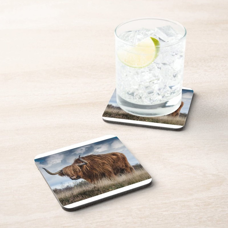 Cork Coaster - Bull Highland Gorgeous Animal Wildlife Photo Meadow - 1 Piece (95x95mm)