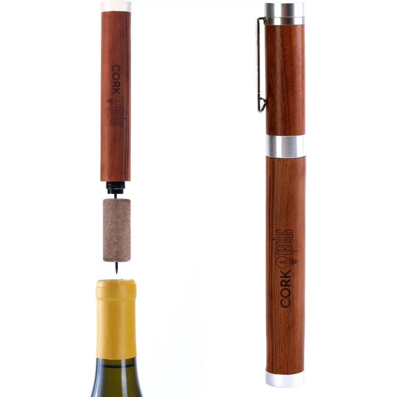 Savor every sip of your favorite vino without worrying about broken corks or complicated wine accessories using the Wine Pen Pro from Cork Genius. Our wine bottle opener is a simple and effective tool that uses the air pressure inside wine bottles to release the cork with just a few pumps. Housed in a wooden body with a rich walnut finish, impress your guests and elevate your wine-drinking experience with our sleek and stylish wine opener pen. This air pressure wine bottle opener measures 8.25 inches long with a 0.87-inch diameter, providing the convenience and portability of a useful wine accessory for travel, picnic, or outdoor celebrations. Due to the construction of our wine openers and to preserve the finish of the wood, it is advisable only to clean the needle using a cloth with mild soap and water. With its elegant form and reliable functionality, the Wine Pen Pro from Cork Genius is a great gift idea for anyone who enjoys every occasion with a fine glass of wine.
