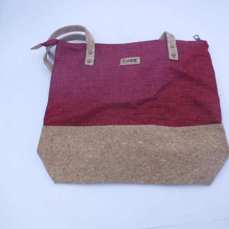 Cork Natural Cork Vegan Tote Bag W/Red Textile Fabric Women's