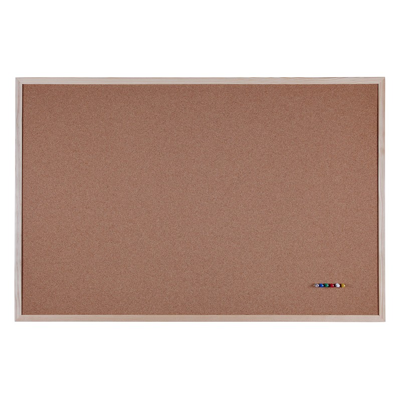 Cork Pin Board with Light Wood Frame, Various Sizes, 90x60cm