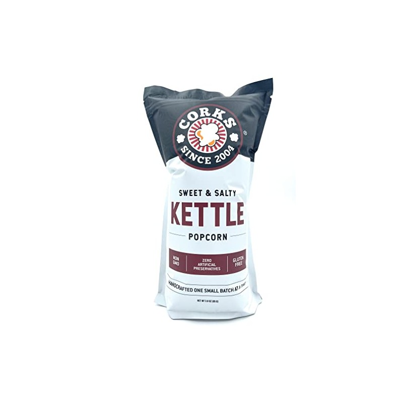 Corks Original Kettle Corn Popcorn Bags, 3oz – Sweet and Salty Gourmet Popcorn Coated with Fine Sugar & Salted to perfection, Gluten-Free, Classic Movie Snack