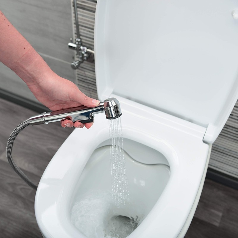 - VIELSEITIG EINSETZBAR: Hochwertiger Brausekopf zum Nachrüsten an vorhandener Badarmatur & Eckventil | Ideal als Alternative zu herkömmlichem Toilettenpapier & Feuchttüchern | Auch zur Reinigung von Waschbecken & Toilette einsetzbar
