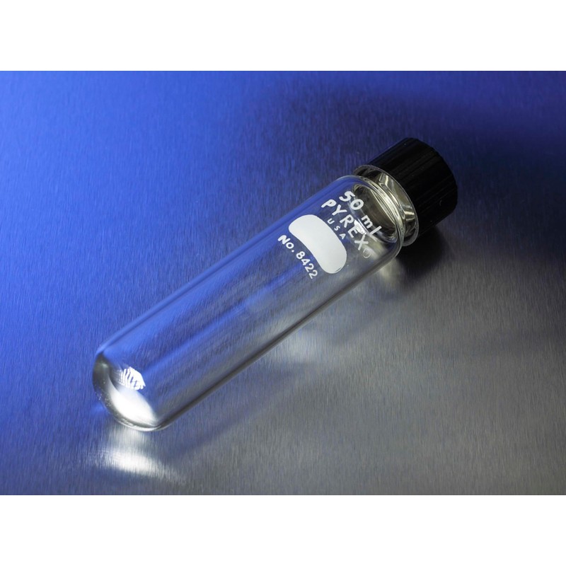 Corning Pyrex Borosilicate Glass Round Bottom Cylindrical Centrifuge Tubes with Screw Cap, 50ml Capacity (Case of 12)