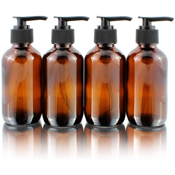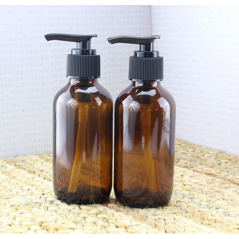 • VALUE 4-PACK: Receive four empty 4-ounce amber brown glass Boston round bottles with bpa-free black plastic pump tops