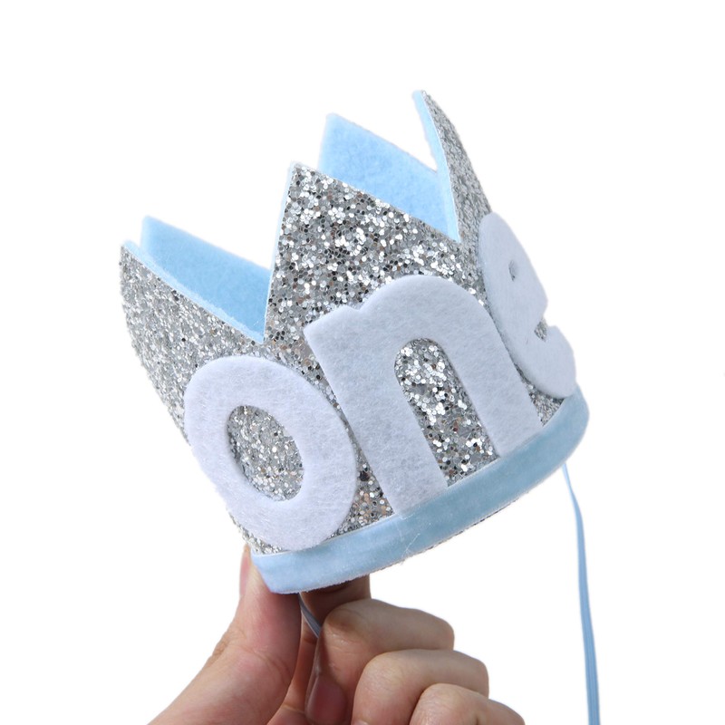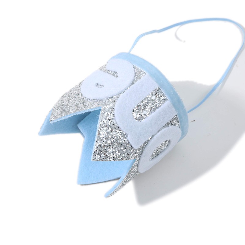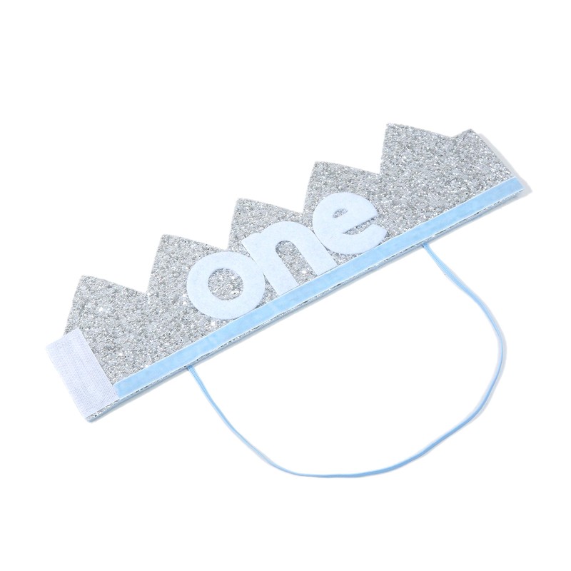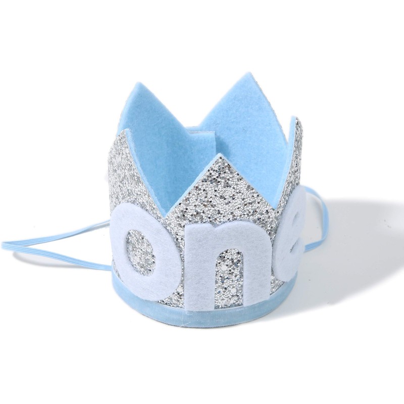 Corona Baby One para primer cumpleaños: diadema para fiesta de primer cumpleaños, corona con purpurina para niño o niña, accesorio de fotografía para recién nacidos, recuerdo y regalos de príncipe o princesa (azul plateado)