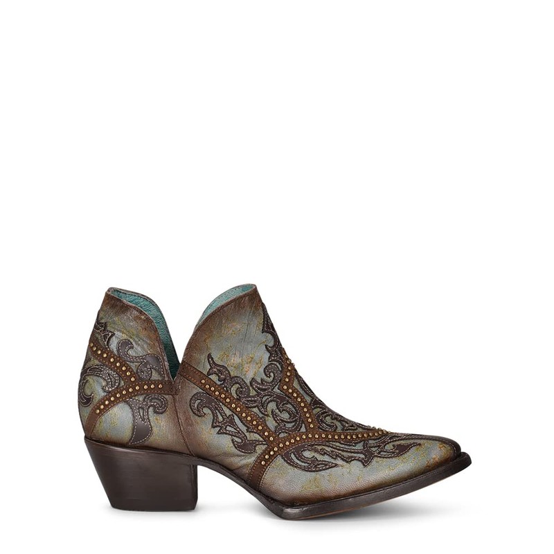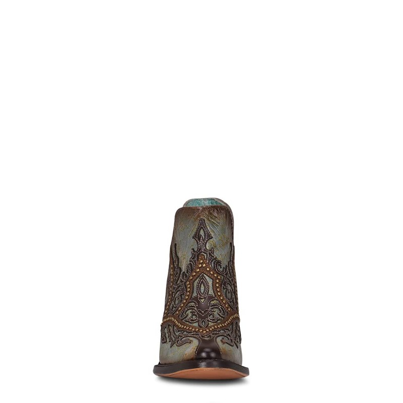 CORRAL LADIES LD TURQUOISE OVERLAY & STUDS BOOTIE POINTED TOE, POINTED TOE, LEATHER Sole, 5 Shaft, GOAT/COWHIDE Leather, WESTERN SHOE, TURQUOISE C3840 Size 7