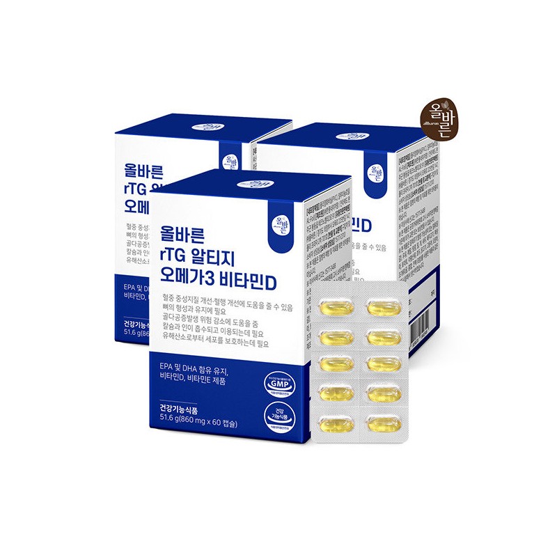 [Correct] rTG Altige Omega 3 Vitamin D 6 months supply (total 180 capsules) / [올바른] rTG 알티지 오메가3 비타민D 6개월분 (총180캡슐)
