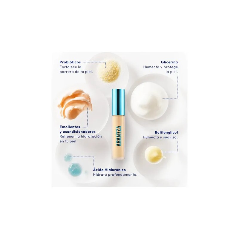 Corrector Líquido Hidratante de Alta Cobertura para Ojeras, Manchas e Imperfecciones con Ácido Hialurónico