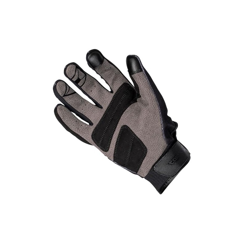 - Neoprene cuff with hook and loop closure. Touchscreen compatible material on thumbs and index fingers