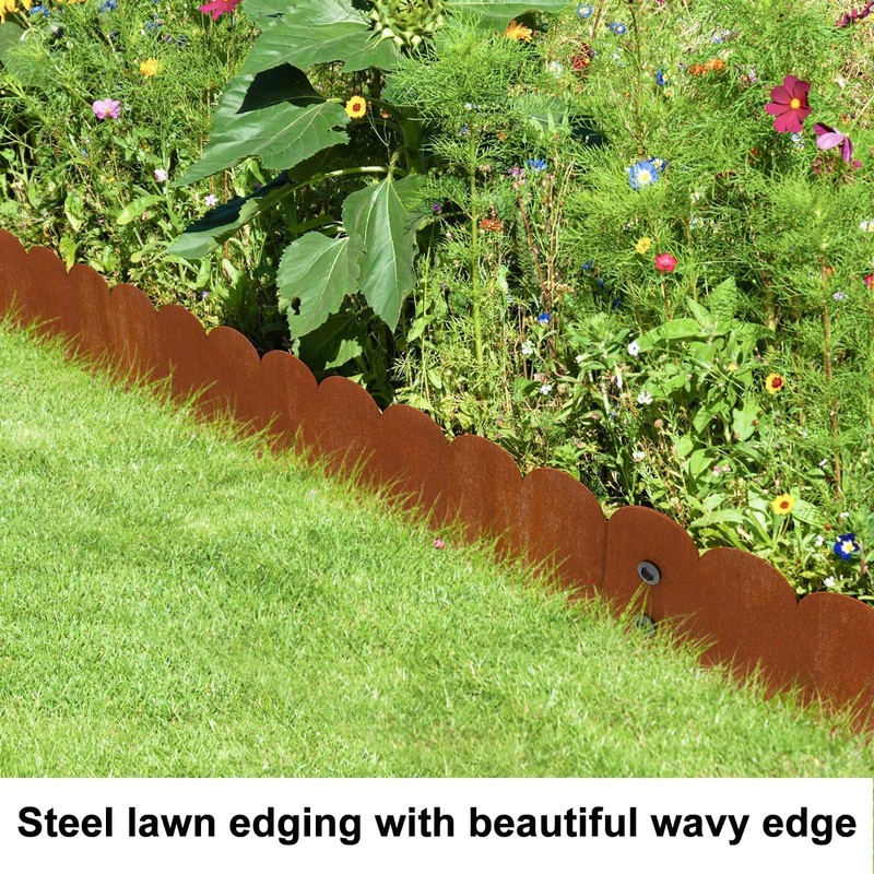 - Various Uses: Corten steel landscape edging is practicality and ornamental all in one. 8 Inches tall metal landscaping edging can be used in outdoor gardens, lawns, vegetable gardens, farms, paths, trees rings,flower bed border etc. Steel edging for landscaping create a clear line, prevents weeds from spreading and keeps the garden looking neat and tidy