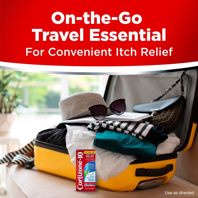 Stop the itchsanity! Cortizone 10 Maximum Strength Soothing Aloe Anti-Itch Cream starts working on contact to relieve itching and inflammation associated with eczema; psoriasis; poison oak, ivy, and sumac; and much more. It's formulated with maximum-strength hydrocortisone to relieve itch and enriched with aloe vera to soothe skin. Best of all, Cortizone 10 Soothing Aloe Cream is fragrance free and dye free. No wonder it's the No. 1 doctor-recommended anti-itch brand among topical analgesics.* Bring this 0.5-ounce tube with you on the go CC in your backpack or carry-on luggage. *2021 IQVIA Study