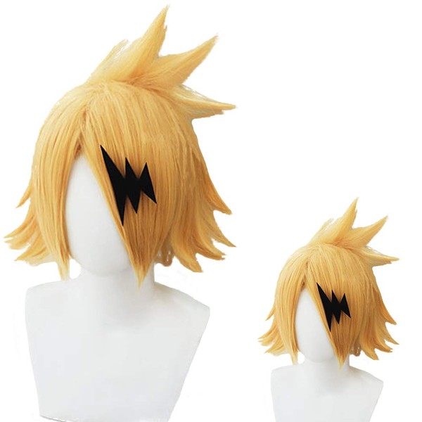 [二番目の城] 耐熱コスプレウィッグ 稲妻髪飾り付 僕のヒーローアカデミア 上鳴電気 パーティー 変装 コスチューム cos wig +おまけ2点